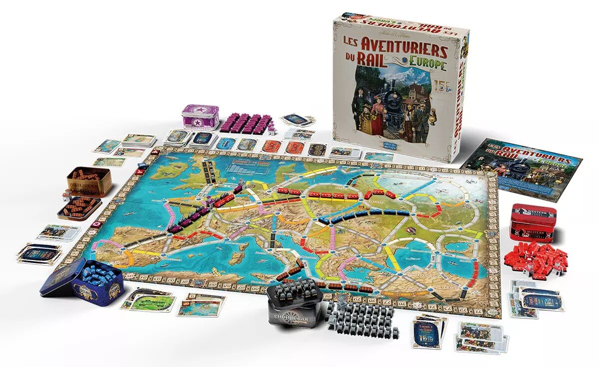 Pour fêter cet événement, nous vous proposons des wagons et des gares finement sculptés et rangés dans 5 petites boîtes de métal frappées d'un logo personnalisé, ainsi qu'un plateau surdimensionné et de nouvelles illustrations. Vous trouverez aussi toutes les cartes Destinations publiées à ce jour ainsi que les règles de quelques variantes issues de l'extension Europa 1912.