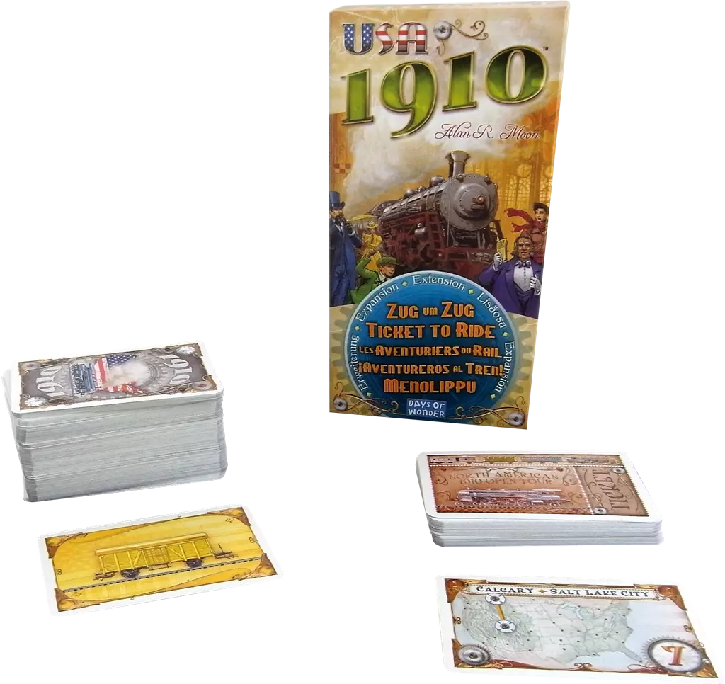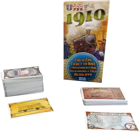 Les Aventuriers du Rail - USA 1910 est une nouvelle extension pour le jeu Les Aventuriers du Rail. Elle contient 181 cartes grand format (celui des cartes de la version Europe) : 39 nouvelles cartes Destination, une nouvelle carte bonus Globe Trotter pour le joueur ayant réussi le plus de cartes Destination, et un paquet complet de cartes de remplacement du jeu original.