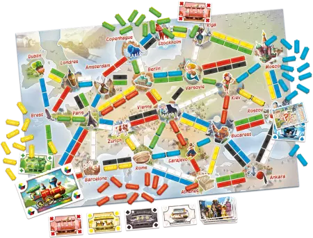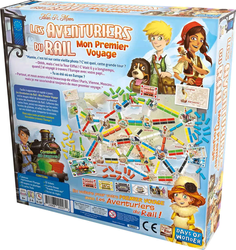 Grâce à des règles adaptées, les enfants pourront se joindre à leurs parents dans la conquête du rail et s'accaparer les chemins de fer européens. Collectez des cartes Wagon et reliez les villes listées sur vos cartes Destination pour remporter la victoire.