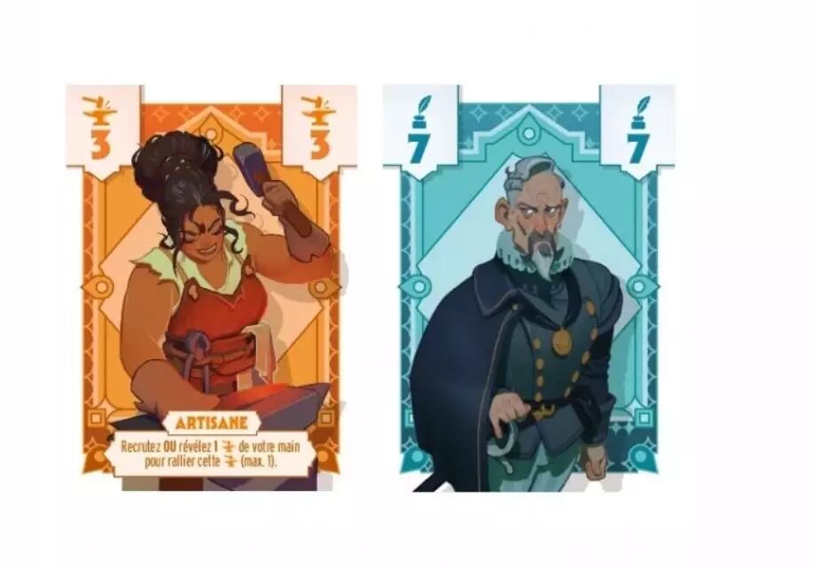 Chaque tour se déroule en deux actions : recruter une carte depuis la zone commune ou piocher à l’aveugle, puis défausser une carte de sa main dans la défausse commune, lieu clé de l’interaction. Les caprices du roi, ajoutés progressivement, imposent des objectifs spécifiques à remplir, faisant de l’adaptation votre meilleure arme. La simplicité des règles permet une prise en main rapide tout en offrant une profondeur stratégique pour les joueurs en quête de challenge.