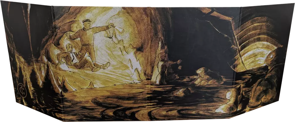 L’écran ne déroge pas à cette règle en offrant d’un côté une illustration plongeant les joueurs dans cet univers inquiétant et de l’autre l’essentiel des tables et aides de jeu utiles au MJ.