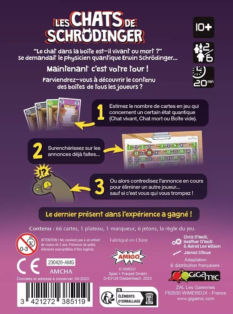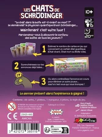 - Proposer une offre : Chaque joueur lance une offre à tour de rôle et après avoir examiné ses cartes. Cette offre correspond au nombre minimum de chats vivants, de chats morts ou de boîtes vides que vous estimez pouvoir trouver parmi toutes les cartes en jeu.