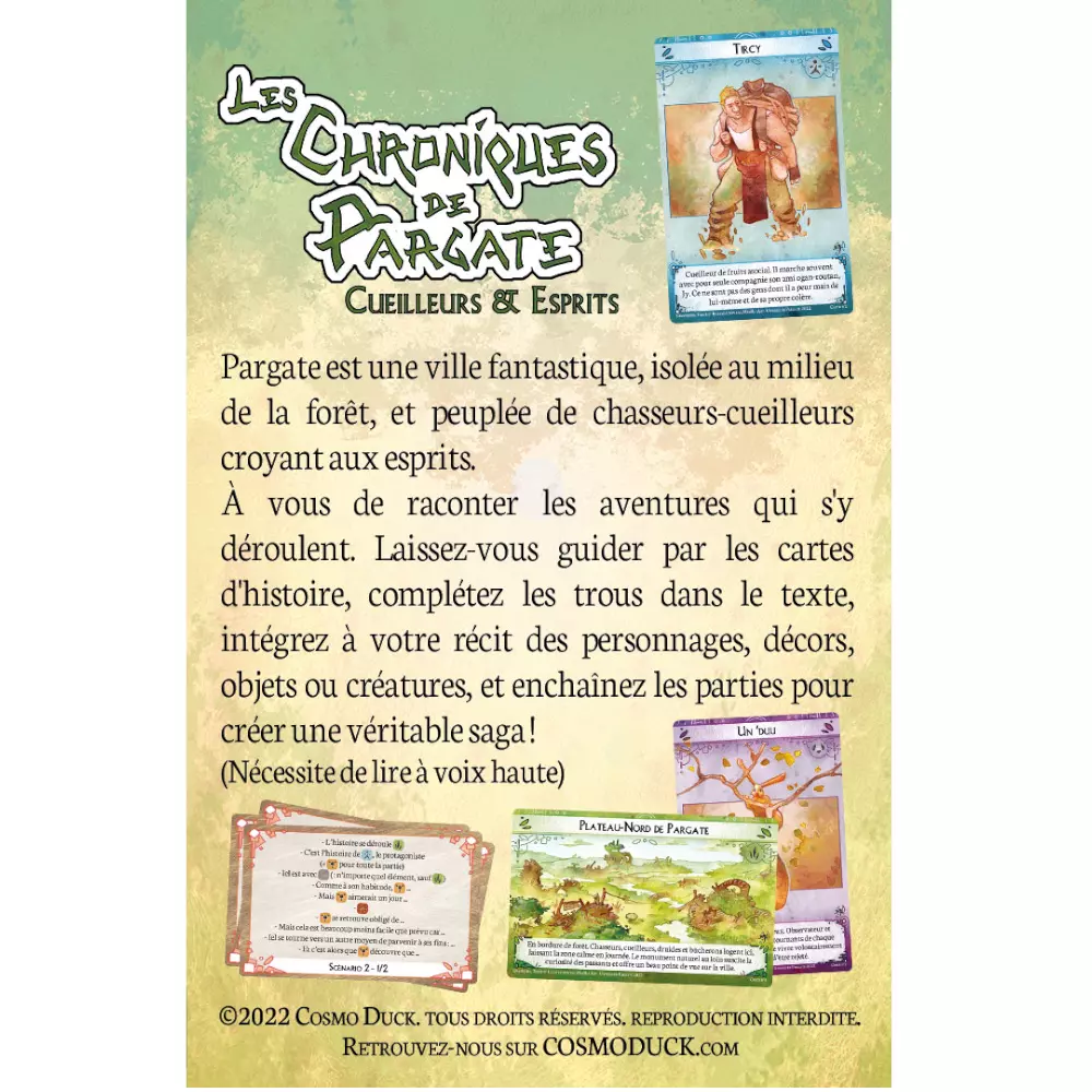Ils intègrent dans l’histoire les différents personnages, objets, décors ou créatures de l’univers de Pargate présents sur les cartes élément.