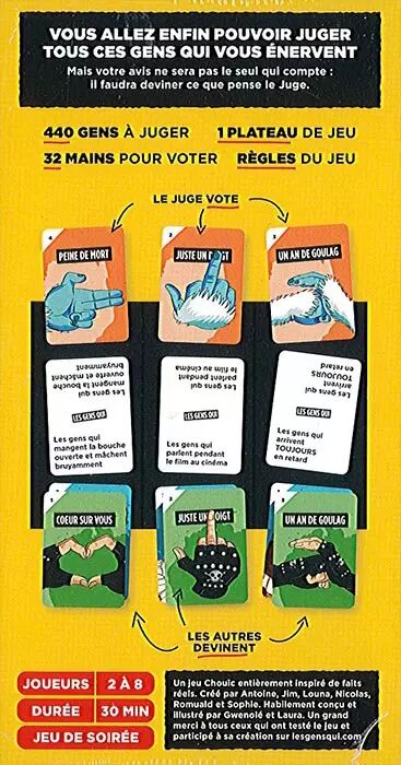 Tu prends des cartes, tu les juges et tes potes doivent deviner ce que tu penses, Après, ça tourne, parce que tout le monde a le droit de se défouler.