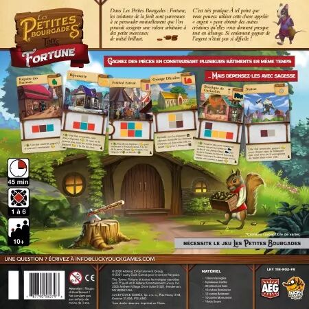 Réf. : JDPLDG056 Les petites bourgades : Fortune est une extension du jeu de construction Les petites Bourgades. Redécouvrez ce jeu coup de cœur avec l'ajout d'une nouvelle ressource bien utile mais rare, l'argent !