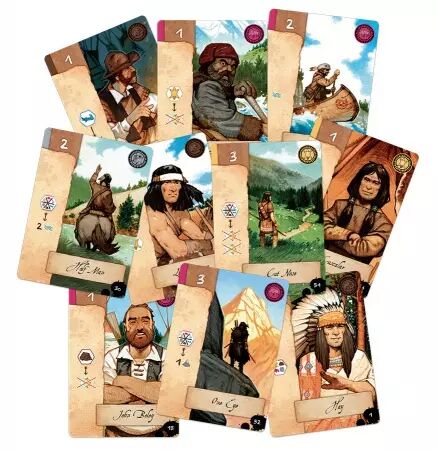 Chaque joueur a en main des cartes Personnage qui forment son expédition. Ces personnages permettent d'effectuer des actions telles que récolter des ressources, avancer sur le parcours, demander l'aide des Indiens. Pour être déclenchée, l'action correspondant à une carte doit être associée à une Force qui est fournie par soit par une autre carte, soit par des Indiens.