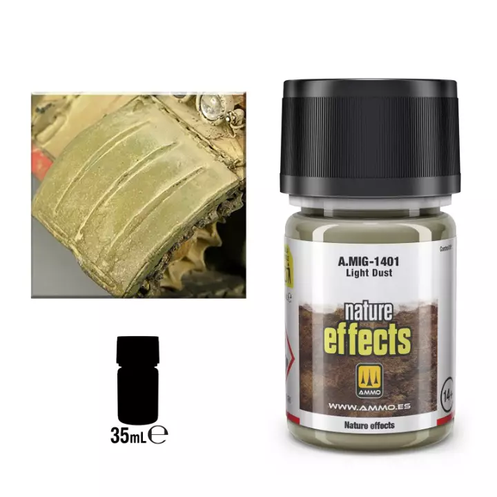 La gamme Nature Effects est l'outil ultime pour ancrer votre maquette dans un environnement réel. Que votre véhicule traverse un champ de bataille boueux, une piste désertique ou une forêt humide, ces produits permettent de reproduire les dépôts de sédiments avec une fluidité que l'acrylique ne peut égaler.