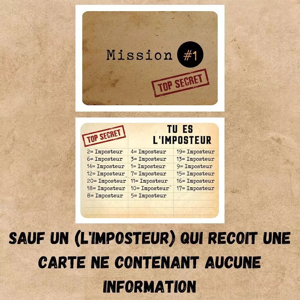 Chaque partie est unique grâce à la multitude de mots secrets et de missions possibles. Les joueurs devront faire preuve de créativité et de ruse pour démasquer l'Imposteur ou pour le rester. Les discussions animées et les accusations mutuelles sont garanties !