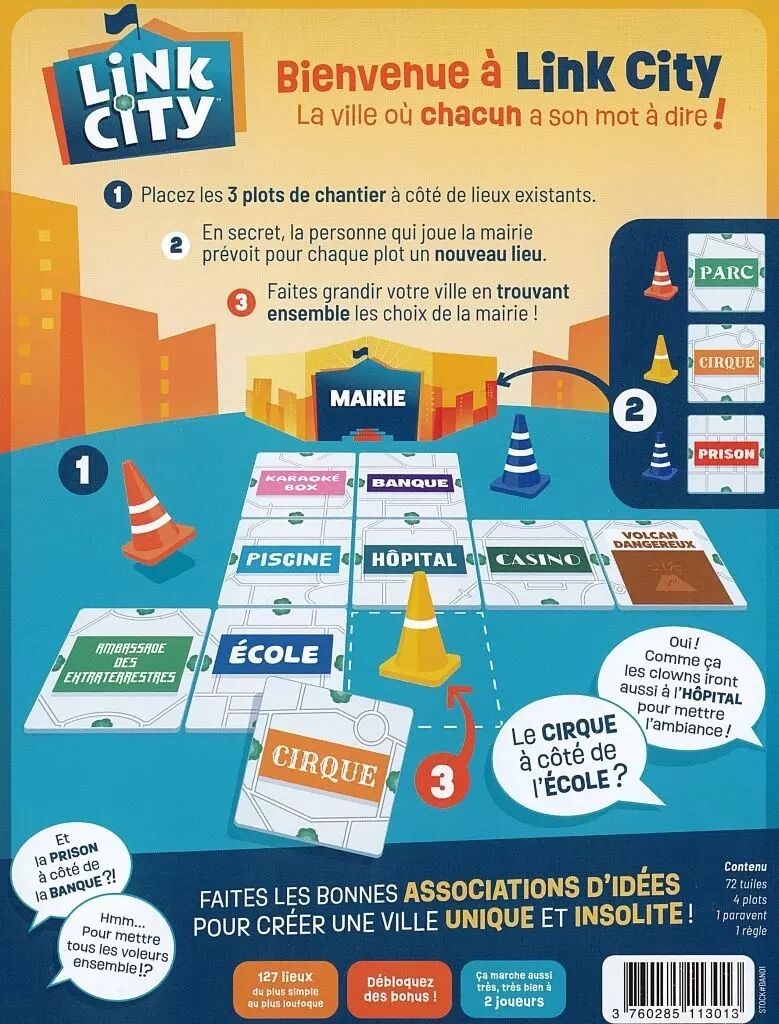 Link City est un jeu qui laisse libre cours à l'imagination et à la créativité des joueurs. Vous allez devoir inventer des associations d'idées originales pour relier les différents lieux de la ville. Ce jeu est idéal pour favoriser le développement de l'imagination et de la créativité chez les enfants.