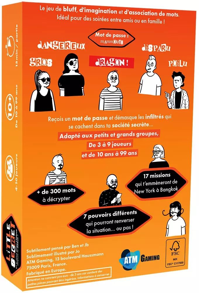 Dans une partie de Little Secret, chaque joueur dispose d’une carte mission comportant plusieurs mots de passe. Le Grand Maître choisit le numéro associé à un mot avec lequel se déroulera la partie.