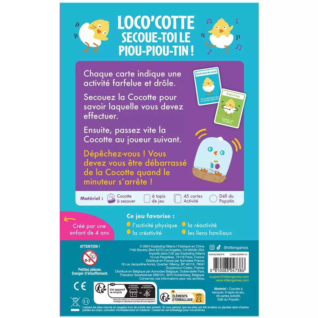 Passez la cocotte à votre voisin avant que celle-ci ne se mette à crier, marquant la fin de la partie !