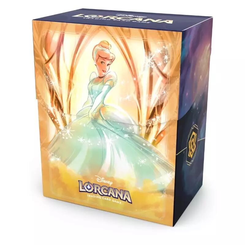 Boite de rangement Disney Lorcana à l'effigie de Cendrillon et pouvant contenir jusqu'à 80 cartes protégées. Issue de la 7ème édition de Lorcana, cette série d'accessoires contient des pochettes et des boites de rangement assorties représentant de magnifiques illustrations de Winnie l'Ourson et de Scar.