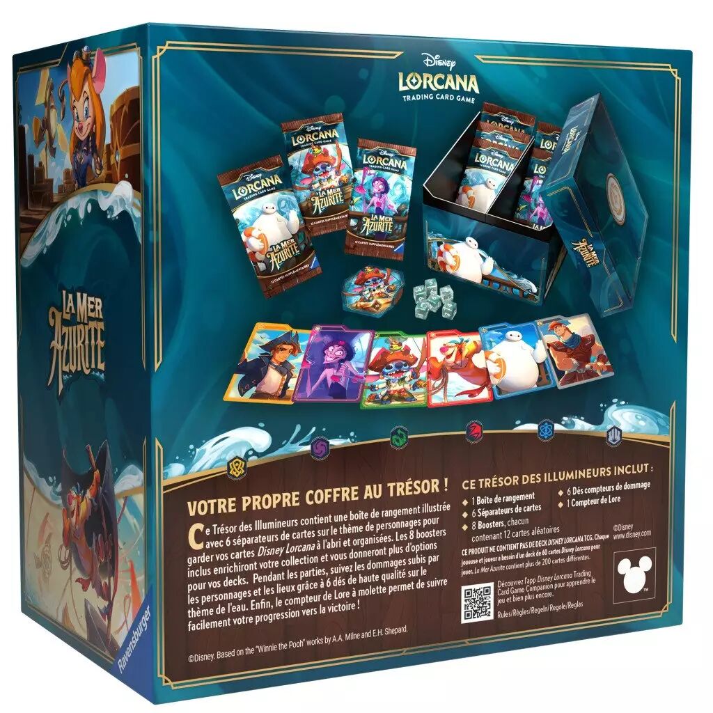 Le Trésor des Illumineurs est le coffret ultime contenant tout le nécessaire pour ranger et inventorier votre collection. Il contient 1 boîte de stockage, des dés compteurs de dommages de haute qualité, des séparateurs de cartes et 1 compteur de lore. 8 boosters supplémentaires viennent également compléter votre collection !