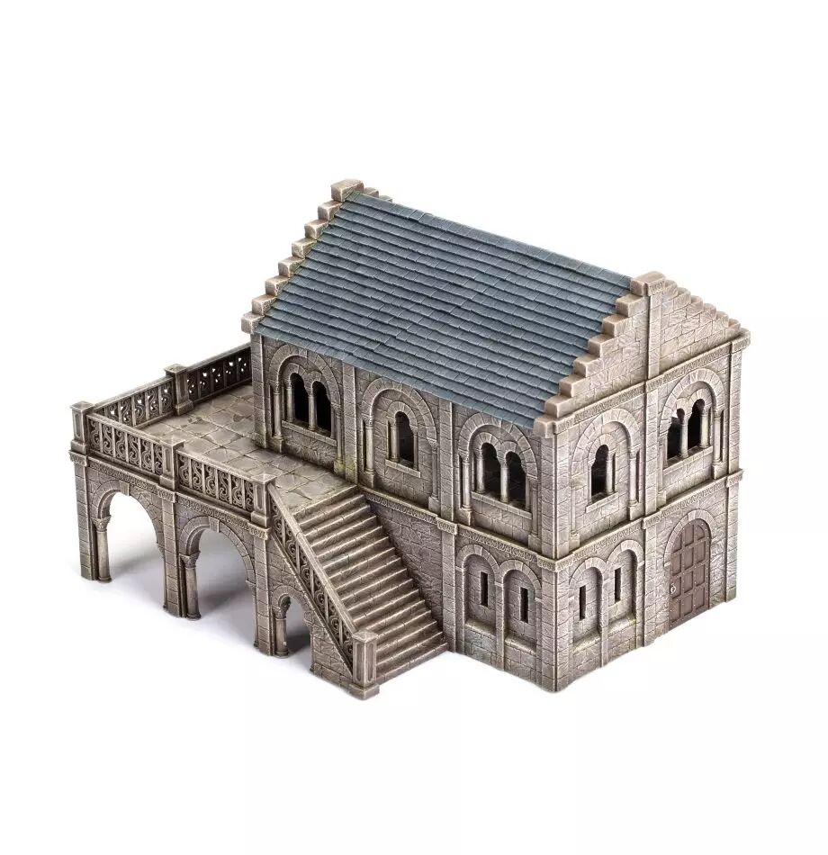 Ce kit plastique permet d'assembler un Gondor Mansion, un grand bâtiment mettant en valeur la maîtrise de la maçonnerie du royaume, avec des portes en bois renforcées de fer et de petits détails comme d'épatants filigranes qui ornent la balustrade du balcon. Ses porches ont été conçus en pensant aux figurines, pour que l'infanterie puisse les traverser et combattre facilement, tandis que les figurines avec des socles plus gros comme les monstres et la cavalerie ne peuvent pas passer. Le toit du manoir est conçu pour être assemblé sans colle, ce qui vous permet de le retirer et de combattre à l'intérieur pendant la partie.