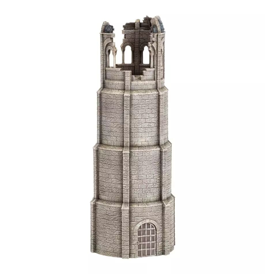 Ce kit plastique permet d'assembler une Gondor Tower, une puissante flèche de pierre robuste, avec des portes en bois renforcées de fer. Cette tour mesure environ 30cm de haut et peut être dotée d'une, deux ou trois portes. Vous pouvez assembler le toit en ruines, comme s'il avait été détruit par un tir de catapulte ou par les ravages du temps, avec des gravats supplémentaires pour décorer sa base. Vous pouvez également assembler une tour intacte avec toit en forme de dôme, conçu pour être monté sans colle, ce qui vous permet de le retirer et de combattre à l'intérieur en cours de partie. Quoi qu'il en soit, le toit détaillé offre assez de place pour placer vos figurines à l'intérieur.