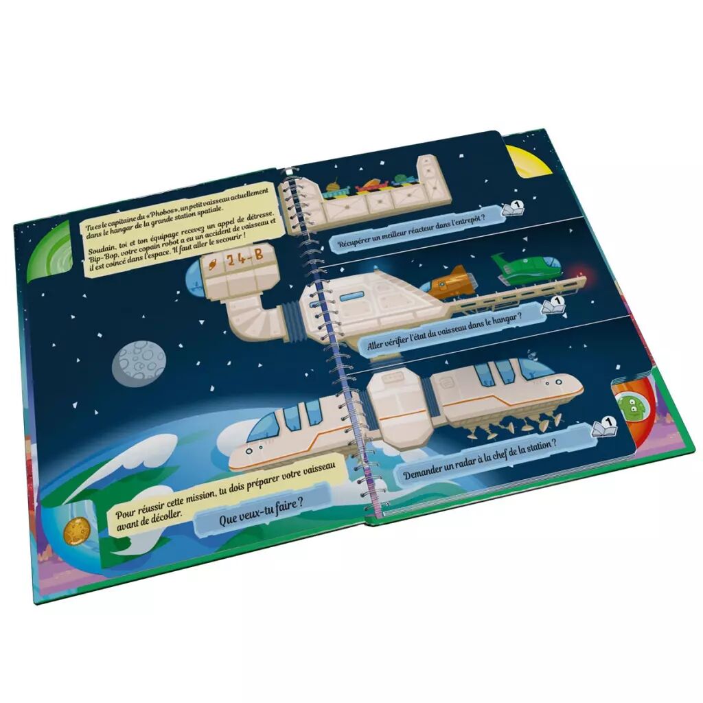 Et maintenant, ta mission spatiale peut commencer. Tu vas pouvoir lire ce livre normalement, de gauche à droite, mais rapidement, tu feras face à des choix matérialisés par des pages coupées en trois. Tourne la partie de ton choix et découvre ce qu'il va se passer. Après plusieurs choix, tu arriveras à la fin de ton aventure... Réussiras-tu à sauver Bip-Bop le robot ?