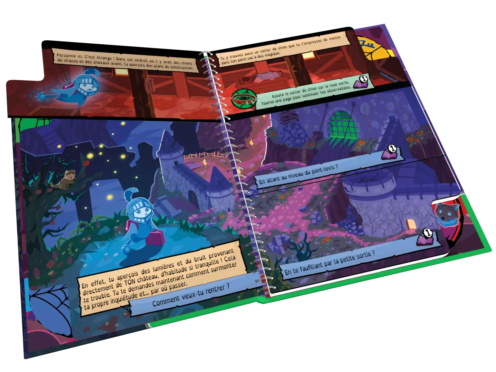 Après plusieurs choix, tu arriveras à la fin de ton aventure… Réussiras-tu à effrayer les intrus de ton domaine et à sauver ton château ? Une fois la lecture terminée, tu peux recommencer pour découvrir de nouveaux chemins ou essayer avec une nouvelles transformations.