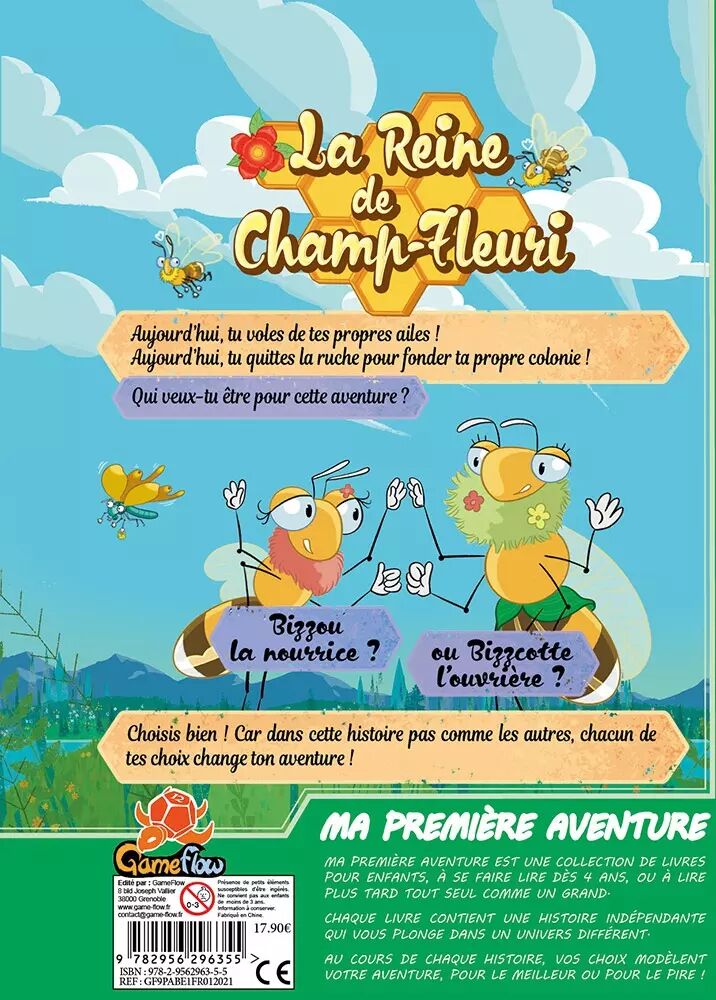 Réf. : GAM020RE Aujourd'hui, tu quittes le nid pour aller fonder ta propre ruche ! Choisis l'abeille que tu souhaites incarner et cherches tout ce qu'il te faut pour créer ta colonie, mais dans ce livre pas comme les autres, ce sont tes choix qui déterminent la suite de ton aventure.