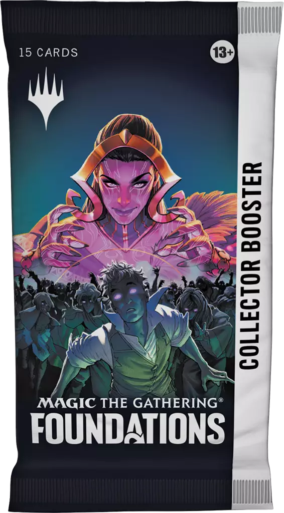 EXCLUSIVE FOIL TREATMENT-Foundations Collector Boosters are the only packs that may contain a Borderless Rare or Mythic Rare card featuring a special foil treatment introduced for the very first time