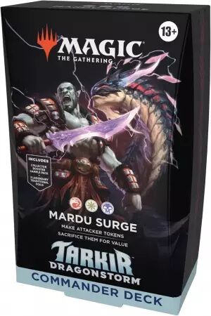 Choose your clan and battle your friends with Commander decks each featuring a legendary clan leader of Tarkir and a Spirit Dragon. Commander decks are ready to play right out of the box and contain everything you need to play Magic's most popular multiplayer format.