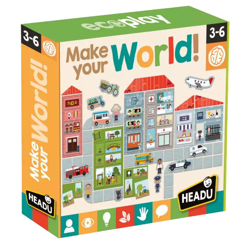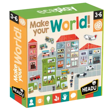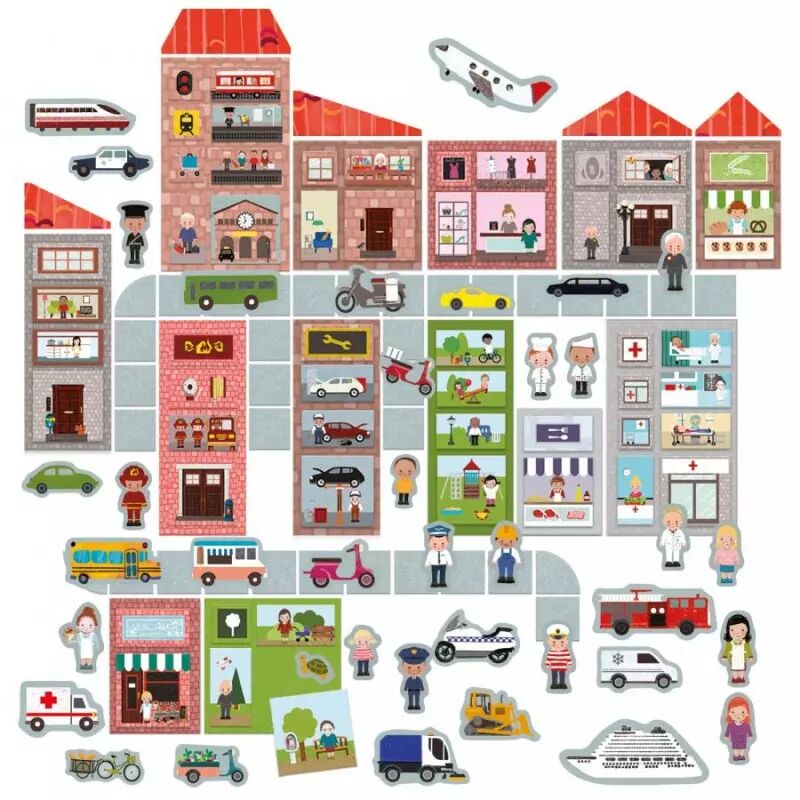 Partons à la découverte de la ville ! Construis des rues, des magasins, des maisons et bien d'autres choses encore. Tu apprendras aussi à reconnaître les rôles et les métiers des personnages en inventant des histoires et des situations différentes à chaque partie.