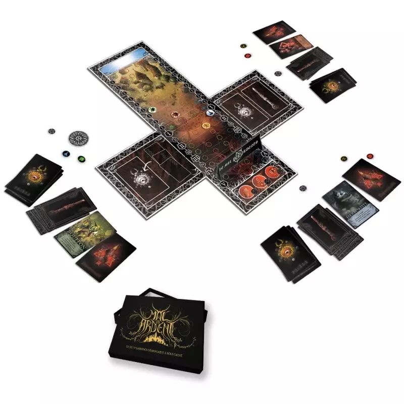 Mal Ardent vous plonge dans le village tourmenté de Saint-Antoine, frappé par la Malepeste, la Guerre, la Famine et la Folie. L’univers visuel, sombre et travaillé, renforce l’atmosphère oppressante : chaque carte, chaque personnage, chaque illustration contribue à une expérience de jeu unique, où l’ambiance médiévale et l’ésotérisme prennent vie autour de la table.