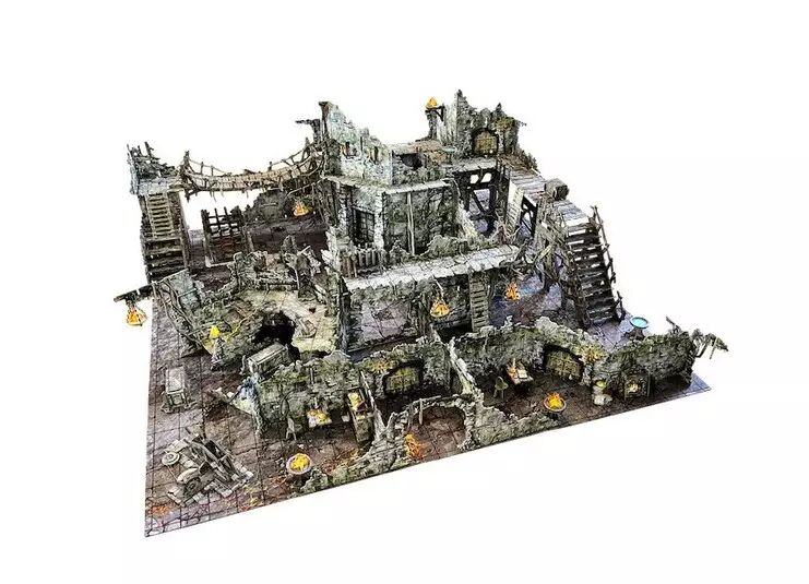 Cet ensemble de terrains de donjon vous permet de créer des donjons immersifs à plusieurs niveaux. Avec plus de 300 éléments, ce set comprend des ponts de corde traîtres, des coffres au trésor consultables, des ruines claustrophobes, des caisses remplies de livres mystérieux et tout ce dont vous avez besoin pour créer des rencontres inoubliables.