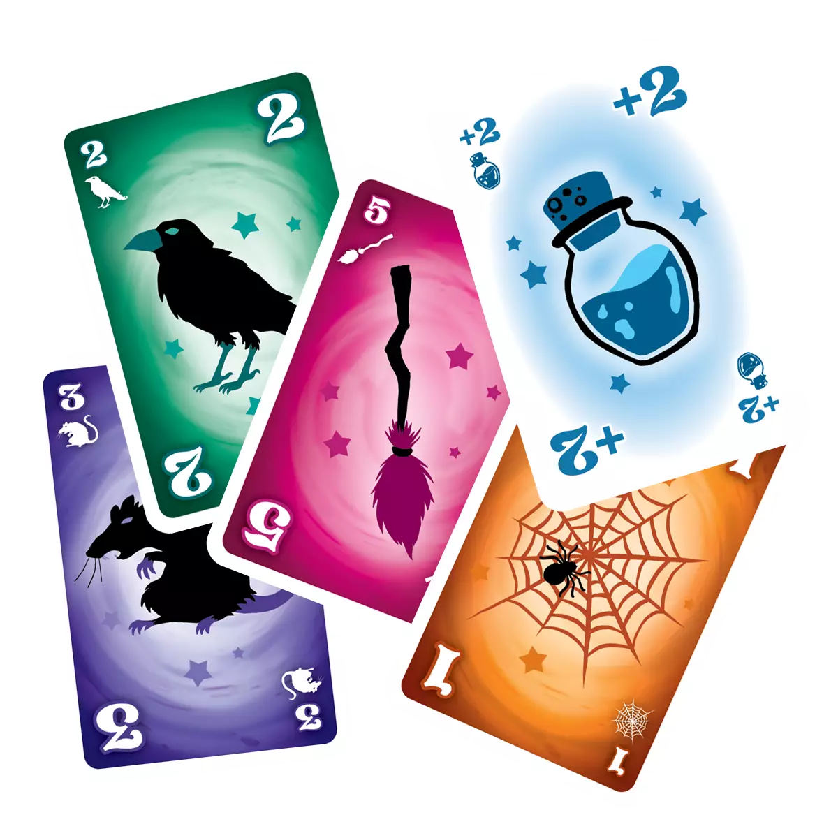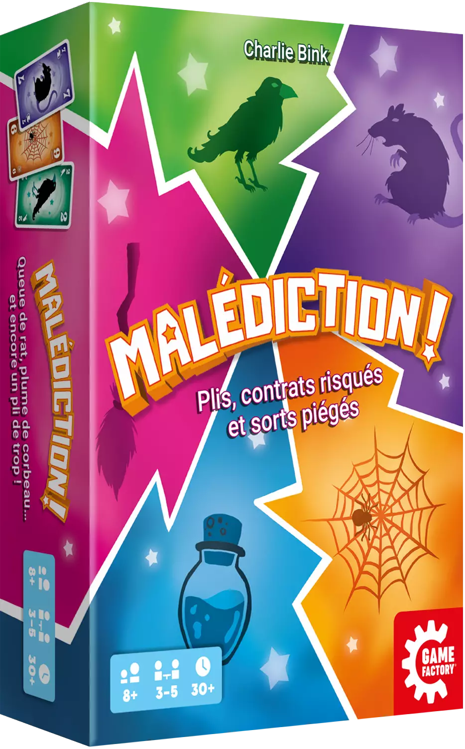 Malédiction revisite le classique jeu de plis en lui ajoutant une couche de subtilité et d’anticipation. Chaque joueur doit prédire à l’avance le nombre de plis qu’il tentera de remporter, et l’enjeu se corse avec des potions magiques venant bouleverser tous les plans. On jubile autant lorsqu’on réalise un coup parfait que lorsqu’une potion vient tout chambouler au dernier moment !