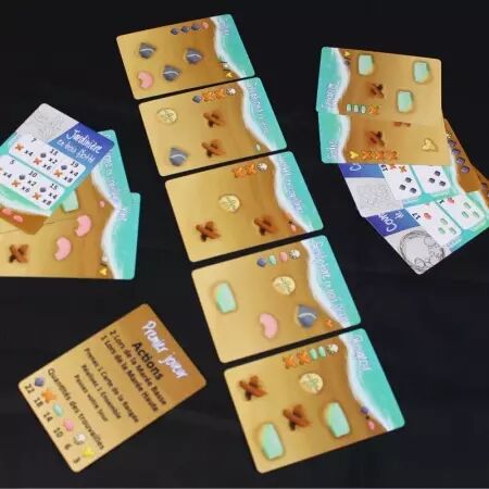 Prenez les cartes de la rangée pendant la MARÉE BASSE pour collecter des objets sur la plage.
