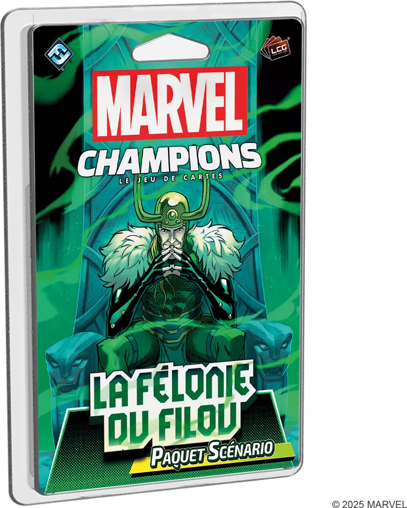 Le paquet Scénario La Félonie du Filou est une extension palpitante pour Marvel Champions : le Jeu de Cartes. Il contient deux scénarios (Enchanteresse ; Dieu des Mensonges) et un set de rencontre modulaire. Le scénario Dieu des Mensonges propose un Mode Multijoueur Épique permettant à n’importe quel nombre de joueurs de combattre Loki, le Dieu des Mensonges !