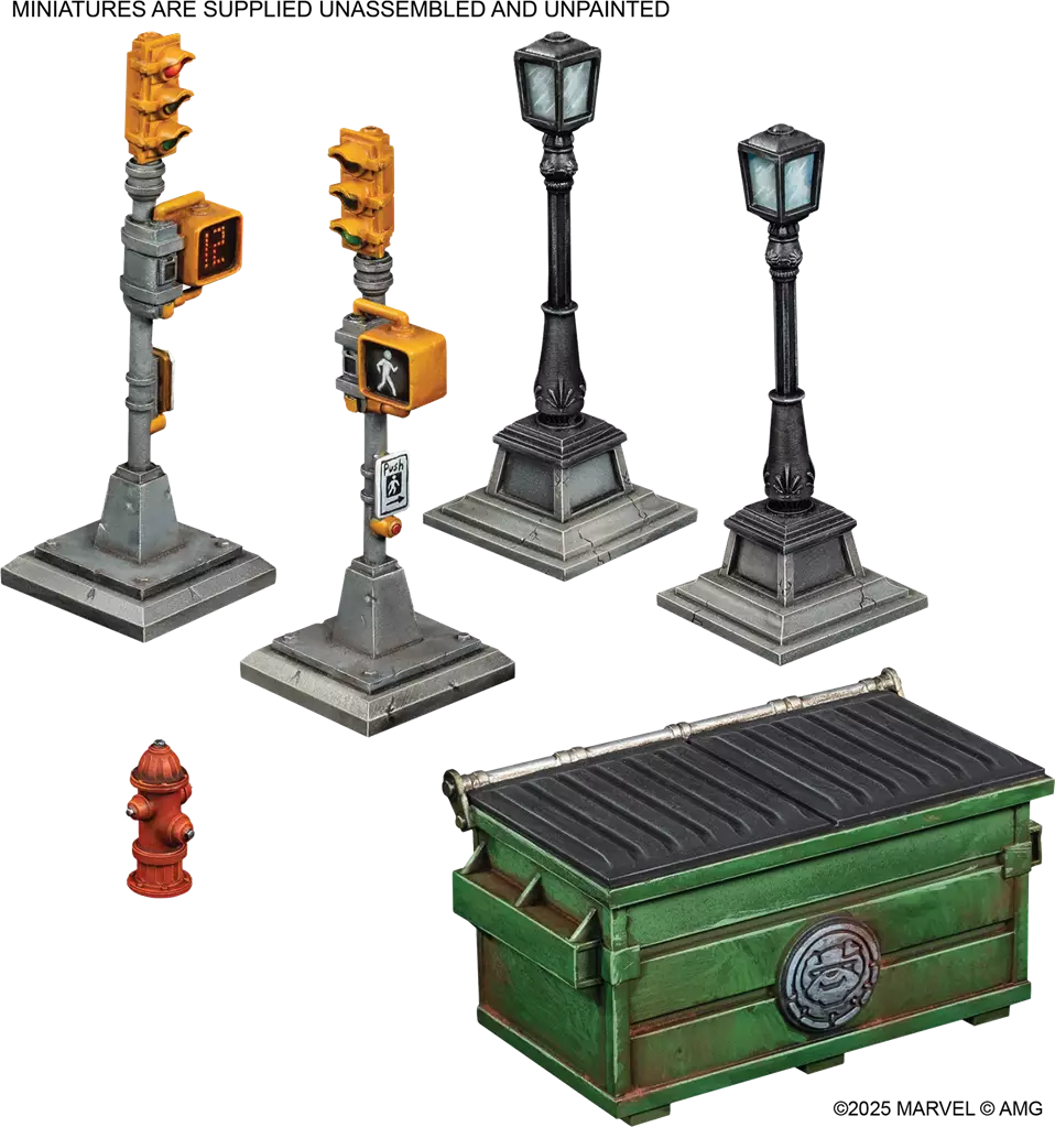 Ce pack contient 13 éléments de décor inspirés des rues de New York : caisses, lampadaires, taxis jaunes, kiosques à journaux, et plus encore. Ces éléments proviennent de trois extensions précédentes (CP06, CP14 et CP36) réunies ici dans une édition spéciale. Il inclut également 7 cartes de mode de jeu "One-Shot" permettant de vivre des scénarios narratifs courts et immersifs.