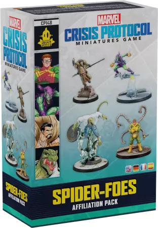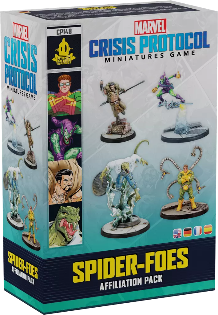 Recrutez les plus emblématiques ennemis de Spiderman dans vos parties de Marvel : Crisis Protocol avec ce paquet d'affiliation. Dans cette boîte, vous trouverez des figurines très détaillées du Docteur Octopus, de Kraven le Chasseur, du Lézard et du Green Goblin, ainsi que leurs cartes statistiques et tactiques. Sus à Spiderman !