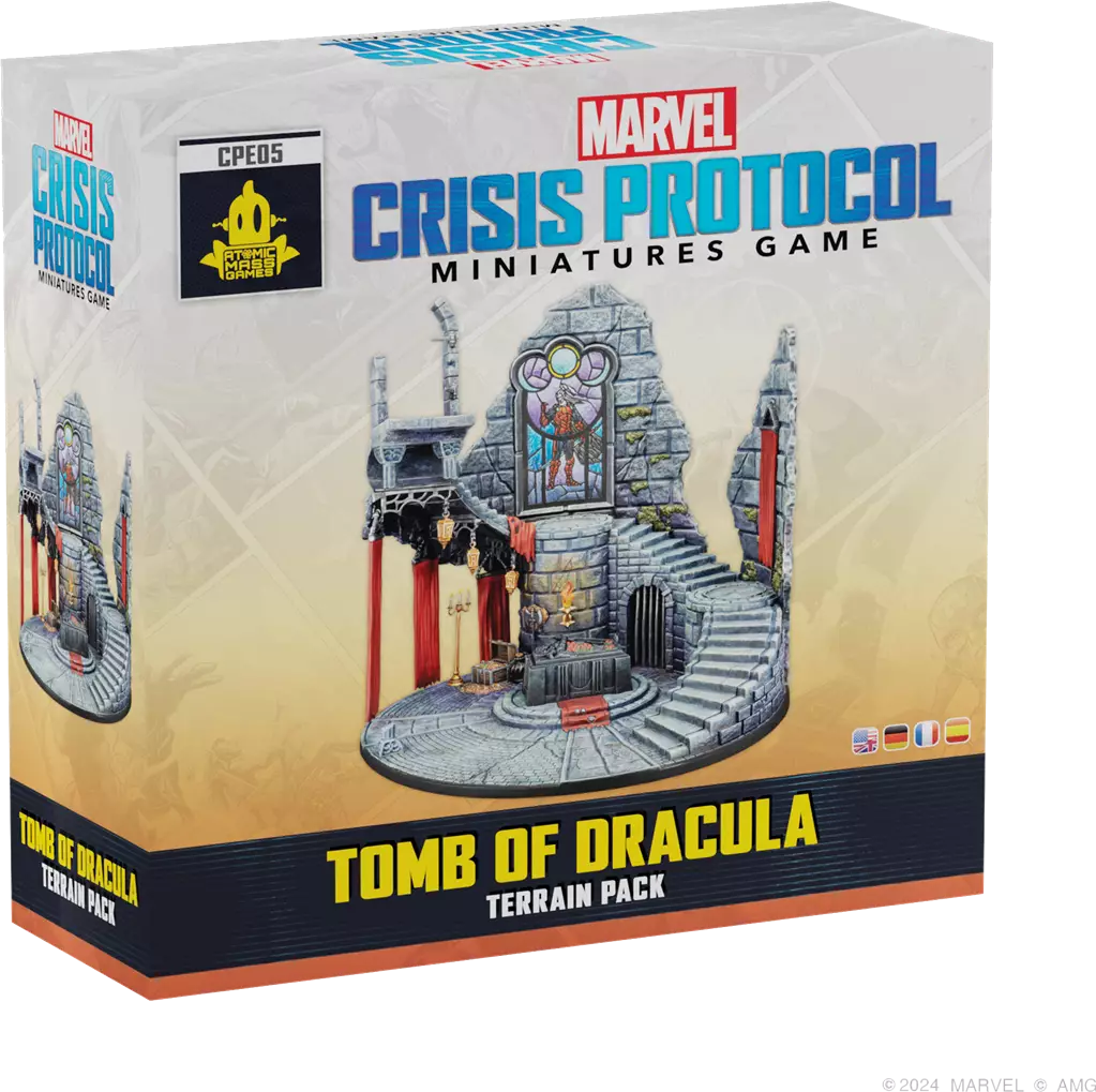 Marvel Crisis Protocol : Tomb of Dracula Castle apporte une toute nouvelle dimension de jeu avec l’introduction du fameux château de Dracula. Cette extension offre un terrain détaillé inspiré des récits et films emblématiques de Dracula. Ce pack thématique permet aux joueurs d’installer des éléments gothiques qui influent sur la stratégie des combats. En plus du terrain, deux cartes One-Shot sont incluses pour ajouter des événements uniques et des défis en lien avec l’univers vampirique.