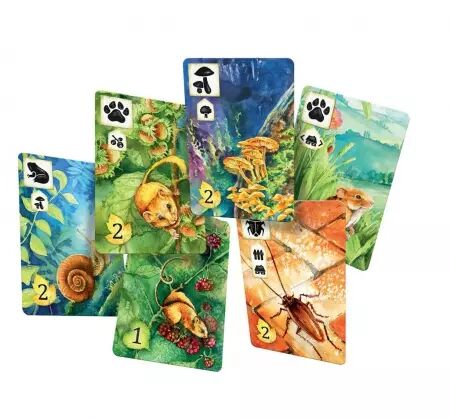 Demoiselle aux yeux d'or, Chêne Rouvre, Couleuvre à collier, Sonnaille, Renard roux, Milan Noir, etc. toutes les cartes bénéficient d'une entrée dans l'index fourni. De plus, une fois les premières randonnées terminées, vous pouvez ouvrir l'une des 5 enveloppes thématiques pour découvrir de nouvelles plantes, paysages et animaux. Meadow propose même un mode de jeu en solo?!