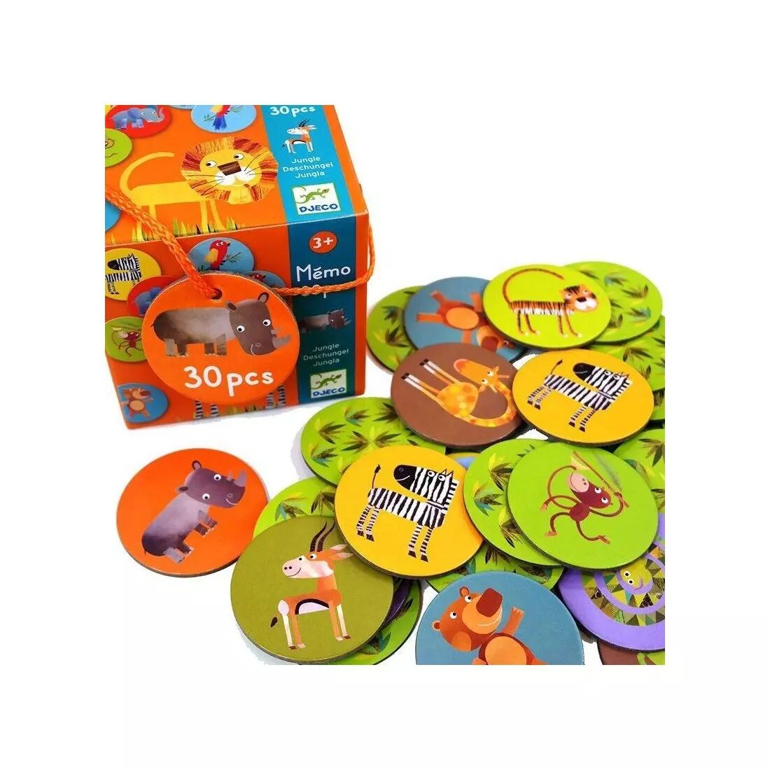 Le mémo - Jungle de Djeco est un jeu d'association d'images et de mémoire sur le thème de la jungle pour les enfants à partir de 3 ans.
