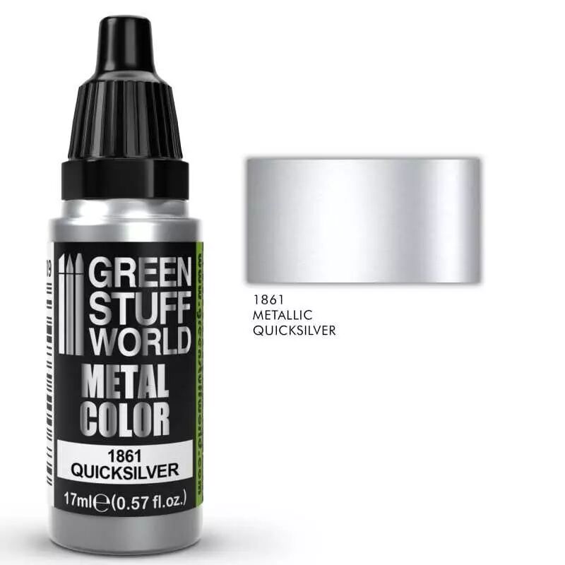 Les peintures métalliques sont disponibles en plusieurs couleurs, comme l'argent, l'or, le cuivre et le bronze, et peuvent être appliquées au pinceau et à l'aérographe. Elles sont généralement utilisées sur une couche de base de couleur noire.