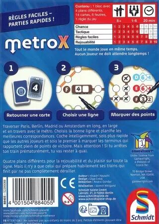 Les parties de Metro X sont courtes et dynamiques, ce qui en fait un jeu idéal pour des moments de jeu entre amis ou en famille. Vous n'aurez pas besoin de bloquer des heures entières pour profiter d'une partie endiablée.