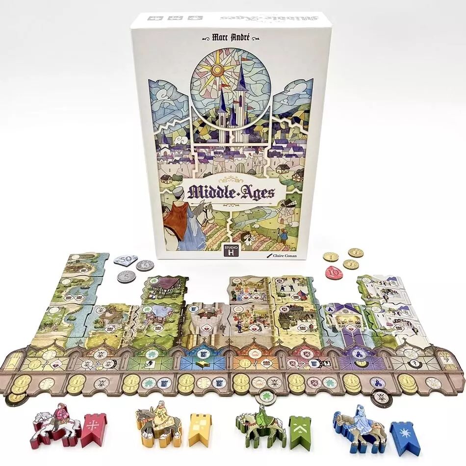 Dans Middle Ages, vous incarnez un seigneur ambitieux en quête de gloire et de richesse. Développez vos terres avec stratégie en choisissant à chaque tour une tuile parmi 8 types potentiellement disponibles : champs, fermes, villages, remparts, marchés, casernes, églises et palais. Chaque tuile possède ses propres avantages et pouvoirs uniques, vous permettant de générer des revenus, d'étendre votre influence et de rivaliser avec les autres seigneurs.