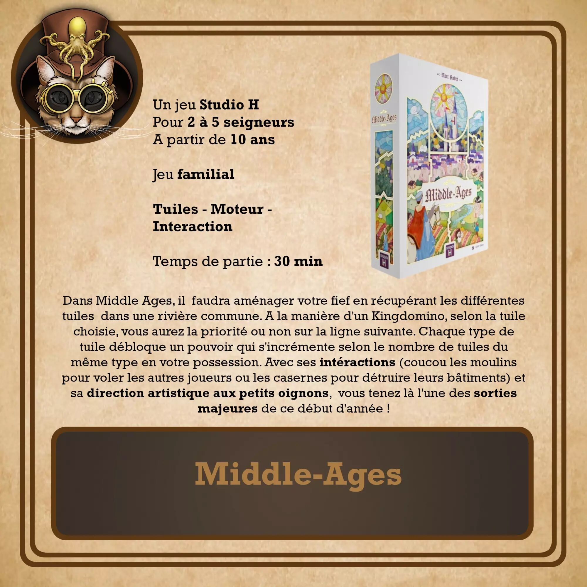 Avec ses règles simples à appréhender et ses parties dynamiques, Middle Ages est un jeu de société idéal pour les familles et les joueurs de tous niveaux. Sa mécanique de draft intuitive et ses interactions constantes en font un jeu à la fois accessible et dynamique.
