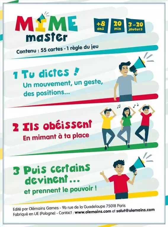 Avec son format pratique, Mime Master est le compagnon idéal pour vos soirées entre amis, vos vacances ou vos réunions familiales. Son petit prix en fait également un cadeau parfait pour tous les amateurs de jeux d’ambiance.