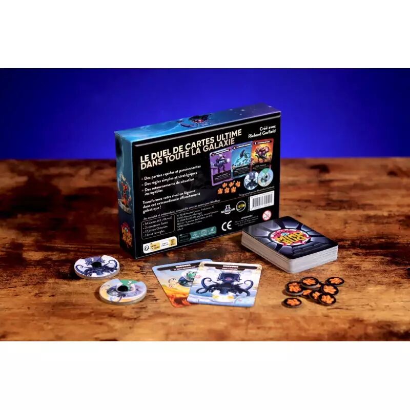Mindbug : Bataille de Fruits Galactique est un jeu standalone dans l’univers Mindbug où Objet Fruité Non Identifié et Oignons Cyborgs vont se faire face. Et comme toujours, même s’il est un standalone, Mindbug : Bataille de Fruits Galactique peut être joué de manière indépendante ou associé avec d’autres jeux Mindbug.