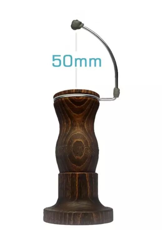 Grip artisan en bois de hêtre teinté noir, avec une finition naturelle résistante à la transpiration (conforme DIN EN 71-3).