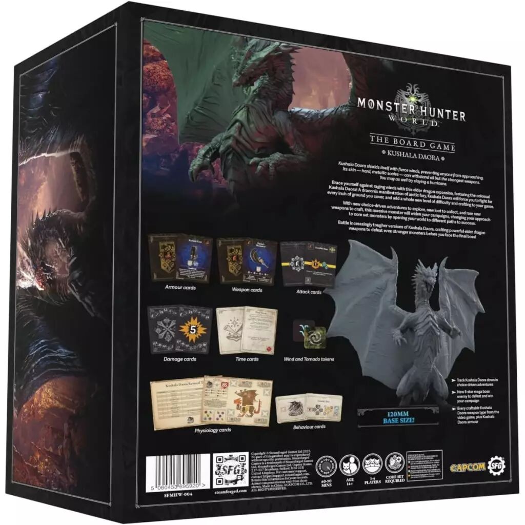 Mesurant plus de 255 mm de haut et ayant une envergure de plus d'un mètre, Kushala Daora est le plus grand monstre de Monster Hunter World : Le Jeu de Plateau.