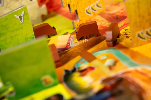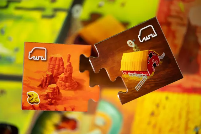 Le système de jeu Kingdomino revisité façon pièce de puzzle.