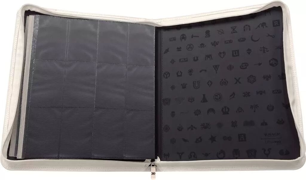 Les classeurs PRO pour Magic : The Gathering présentent les symboles d'expansion des 30 dernières années du jeu de cartes à collectionner débossés sur une couverture et une fermeture à glissière. Les poches latérales et le matériau à faible friction permettent de maintenir les cartes en place. Jusqu'à 480 cartes peuvent être conservées en toute sécurité dans des pages non-PVC, sans acide et adaptées à l'archivage.