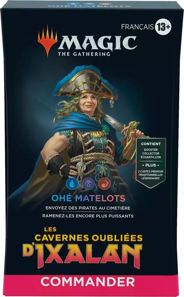 – 1 deck Commander de 100 cartes prêt-à-jouer Les cavernes oubliées d’Ixalan ; 2 cartes Premium traditionnelles + 98 cartes non-Premium