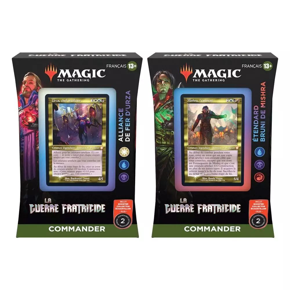 Avec La Guerre Fratricide (Brothers’ War), assistez aux origines du conflit entre les deux frères artificiers Urza et Mishra. Aperçue dans l’édition Antiquities, la Guerre des Antiquités a laissé de nombreuses séquelles sur le plan de Dominaria avant de s’achever dans une déflagration qui plongea le plan dans une Ère glaciaire. Alors que l’avenir de Dominaria est plus sombre que jamais, remontez le temps pour comprendre les enjeux et les causes de cet événement historique.