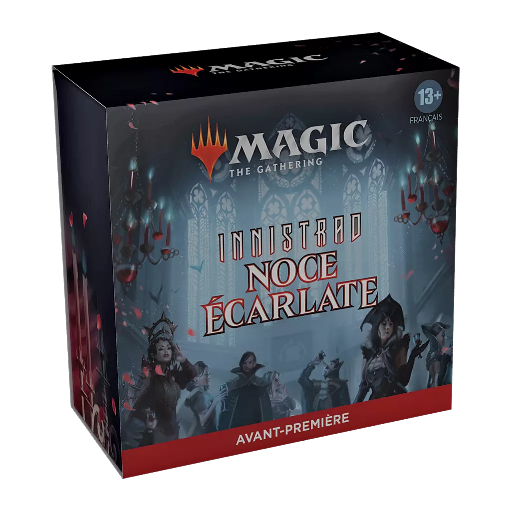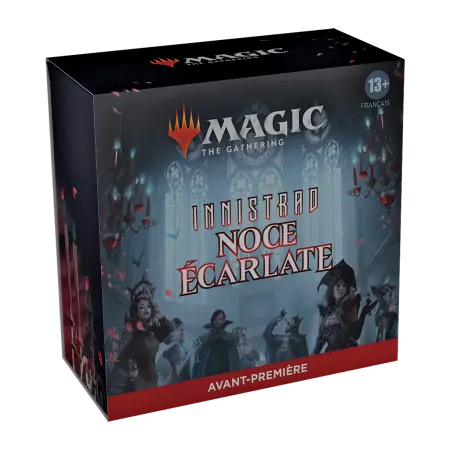 Ce pack d'AP Innistrad : Noce Écarlate contient : 6 boosters de draft Innistrad : Noce Écarlate FR, 1 carte promo estampillée, 1 dé Spindown compteur de points de vie, 1 guide pour vous aider à construire votre deck de 40 cartes. Un booster de draft Innistrad : Noce Écarlate en français contient : 1 carte rare ou mythique, 3 cartes uncos, 10 cartes communes, 1 carte de terrain de base, 1 jeton. Une carte foil de n'importe quelle rareté peut parfois remplacer une carte commune. En plus de cela, une carte Collector (sans bordure ou showcase) peut aussi remplacer une carte de rareté correspondante !