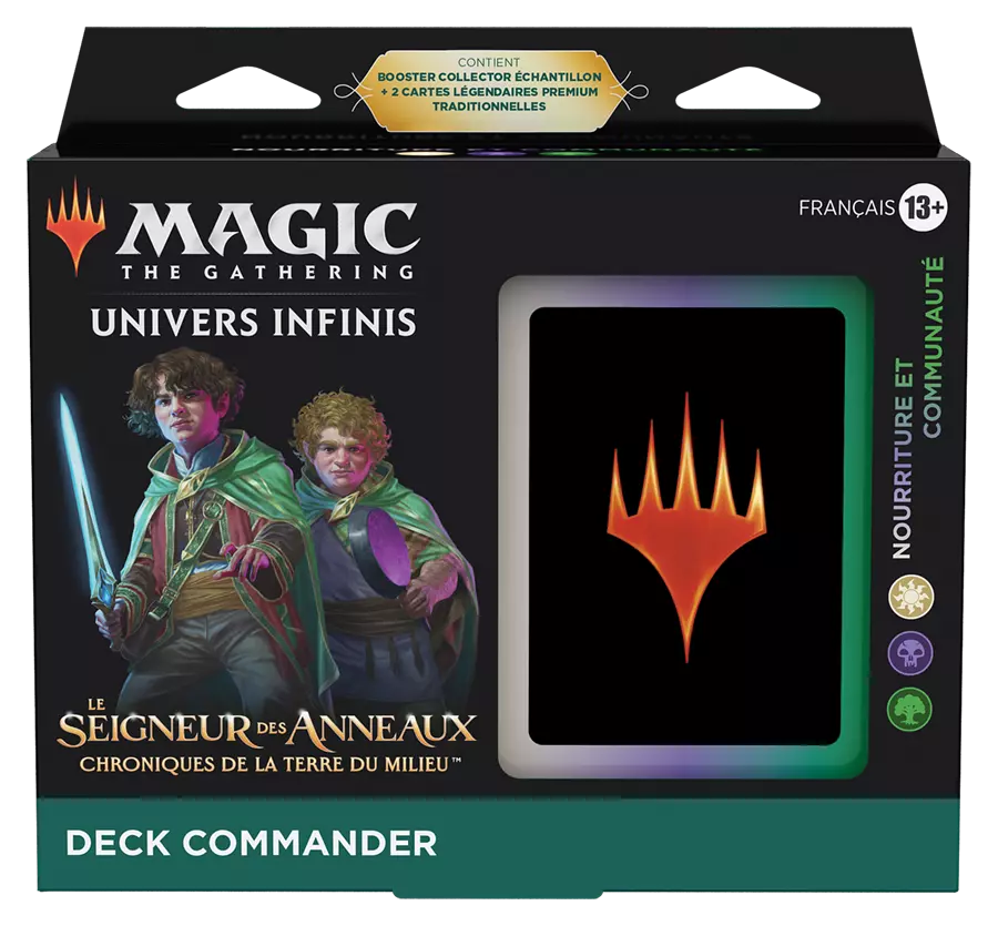 - 1 deck Commander Le Seigneur des Anneaux : chroniques de la Terre du Milieu prêt-à-jouer (inclut 2 cartes légendaires Premium)