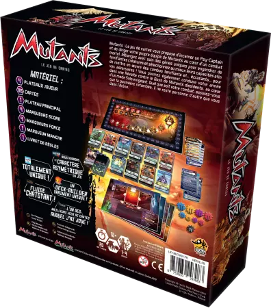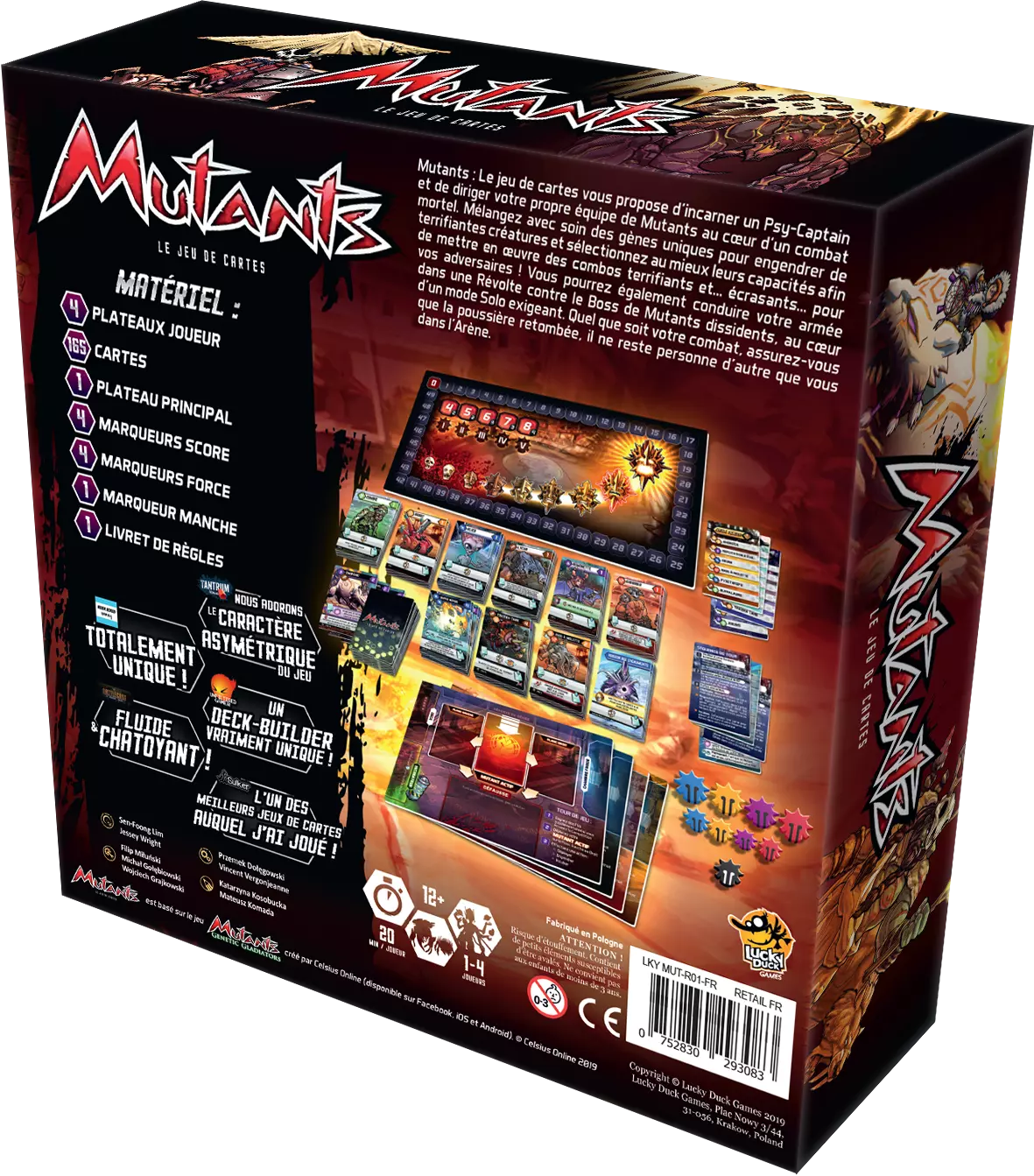 Réf. : JDPLDG015 Dans Mutants, 1 à 4 joueurs font des expériences sur la génétique pour créer des guerriers ultimes et démontrer leurs prouesses dans l'arène. En dominant l'arène et en gelant les mutants les plus valeureux, vous gagnez des points de victoire - et celui qui en obtient le plus gagne.